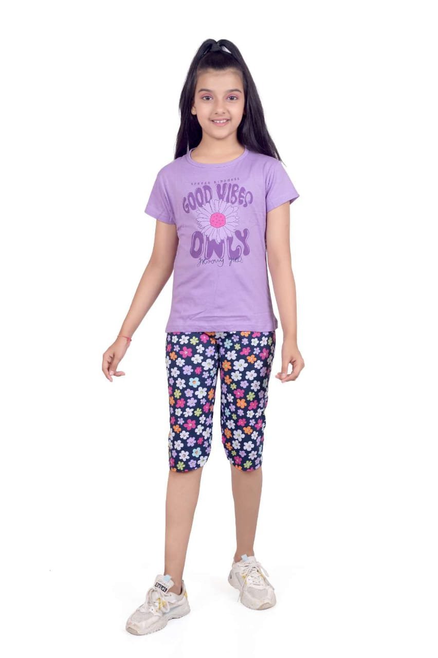 A cute and comfortable girls’ capri set made with soft, breathable fabric. Perfect for daily wear, outings, and playtime, offering both style and comfort for active kids.